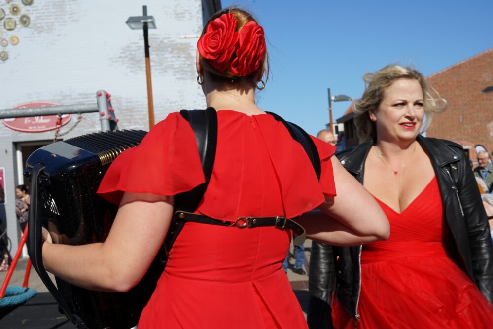 - Julie Holmegaard Schade, der spiller på akkordeon, som er en form for harmonika. Hun er uddannet fra Det Kgl. Danske Musikkonservatoriums solistklasse.