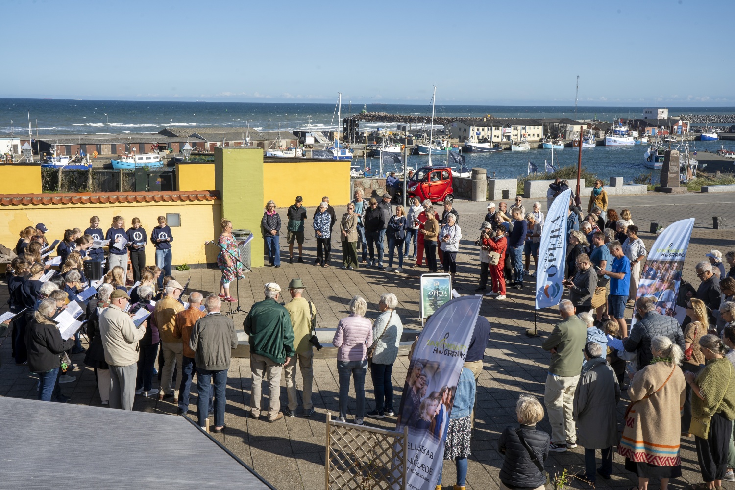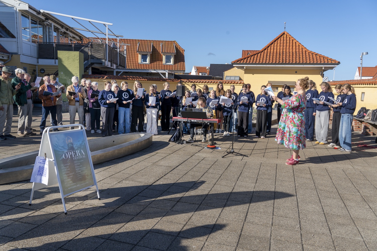 Over 150 sangglade og nysgerrige lokale og turister mødte op lørdag den 6. september, da 50 korsangere fra Nordjysk pigekors juniorkor og Bjergby-Mygdals voksenkor sang for til operafællessang på Den Grønne Plads.