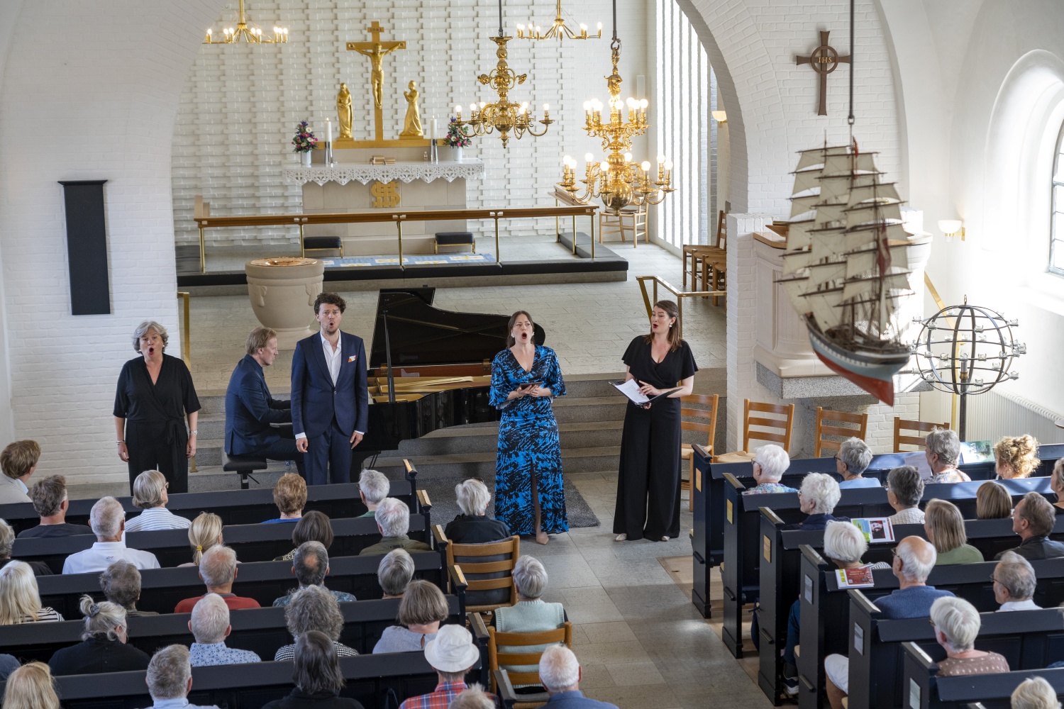 Stor succes for Jonathan Koppel, Clara Cecilie Thomsen, Laura Mayer, Henning von Schulman samt pianist og konferencier Leif Greibe som gav en medrivende koncert i en tætpakket Hirtshals Kirke. Gæstesolist Sine Merrild Bundgaard.